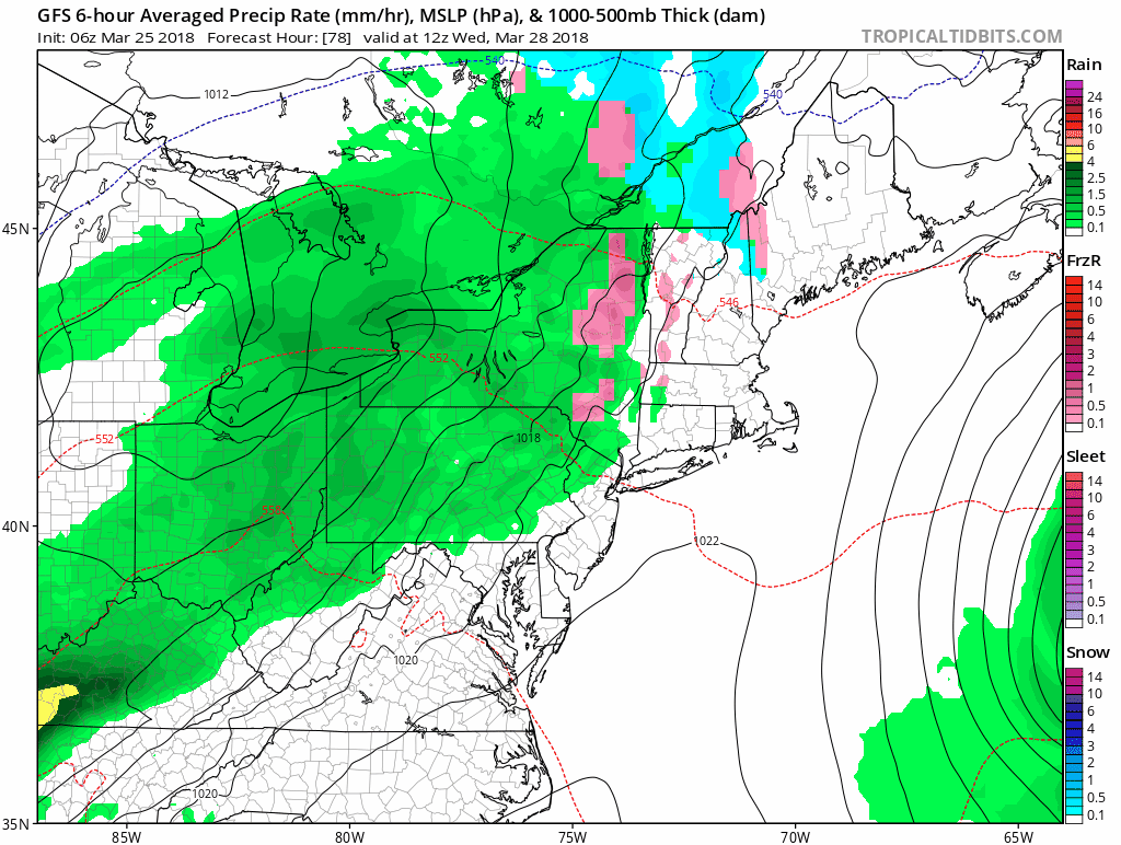 A front will stall to our west. This will pump in warmer air, but also a few rounds of rain. Showers are expected for the second half of the week. Wednesday will be mostly west and north until evening. But Opening Day might include rain near Camden Yards.