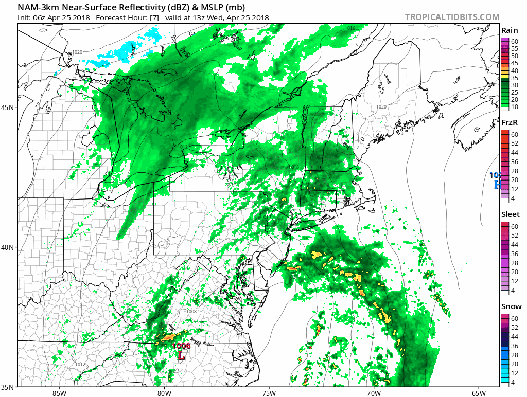 The simple version of today’s weather states rain. We have a batch this morning and more showers on the way. It will be a mild and breezy day with moist winds from the east that will feed into more rain. If we can get any sun to break out, that will fuel potential thunderstorms this afternoon and evening. There will be another round of rain on Friday morning, and then set us up for a quieter weekend. The big change is the heat next week. Once again I think the models are undercutting the potential highs and we have a chance at reaching the 80s a few days.