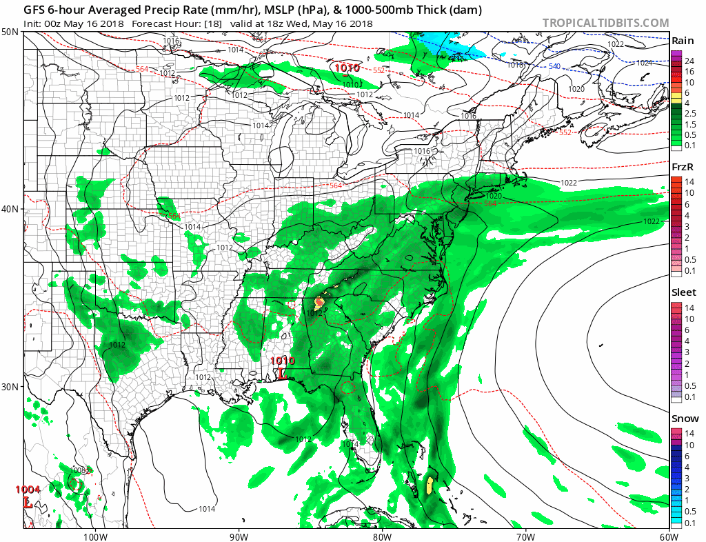 We are stuck in this pattern for a few days. The good news is that the severe storm threat is very low today, but more heavy rain is expected. The combination of a stalled front over our region and a tropical system in the Gulf of Mexico is funneling rainfall our way. Today alone we could see 1 to 3 inches in spots. Through this weekend, a larger swatch of 5 to 7 inches of rain is possible.