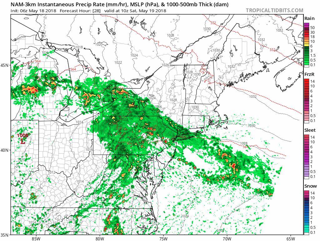 If you are concerned about plans for Saturday, it looks like we will have more rain reaching back north of Baltimore into Pennsylvania. This includes some wet weather for Preakness, but for now it looks like to moderate.