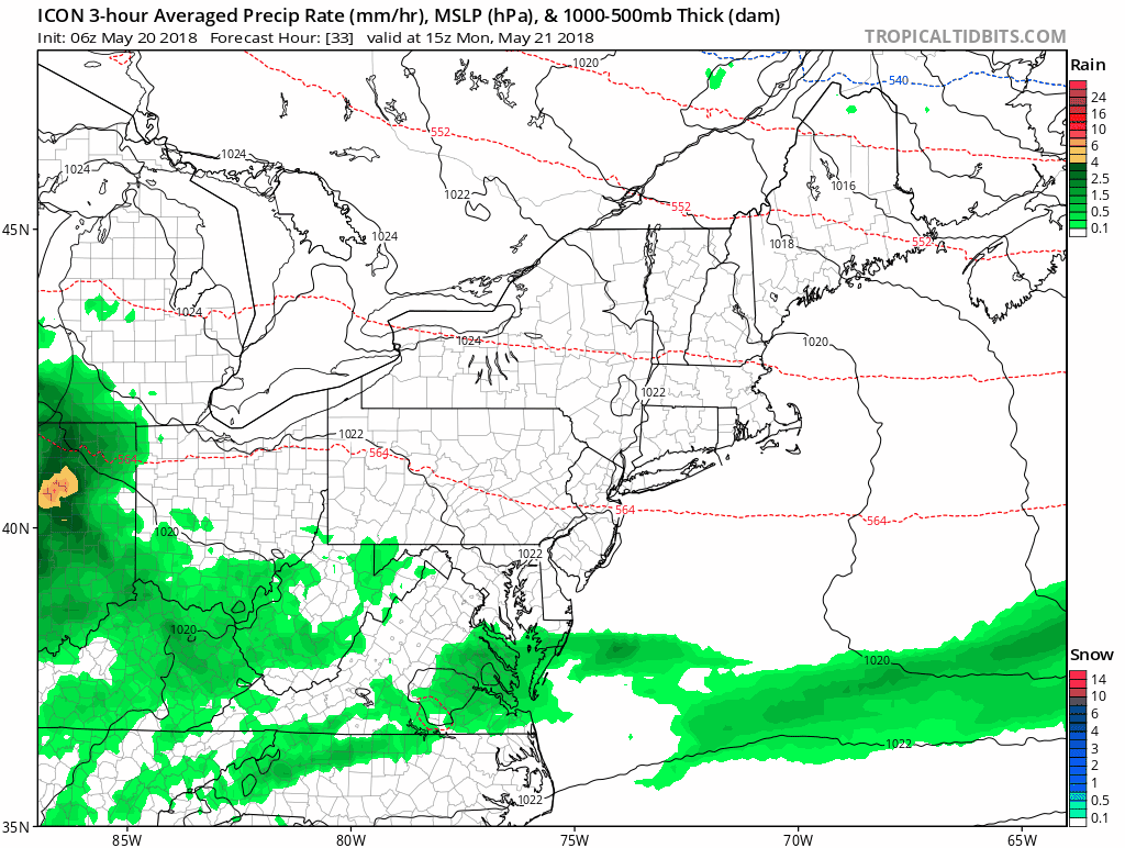 Yes, there will be some showers Tuesday and Wednesday, but they will be scattered and not all day things… But Monday, Thursday and Friday show up in this animation DRY!