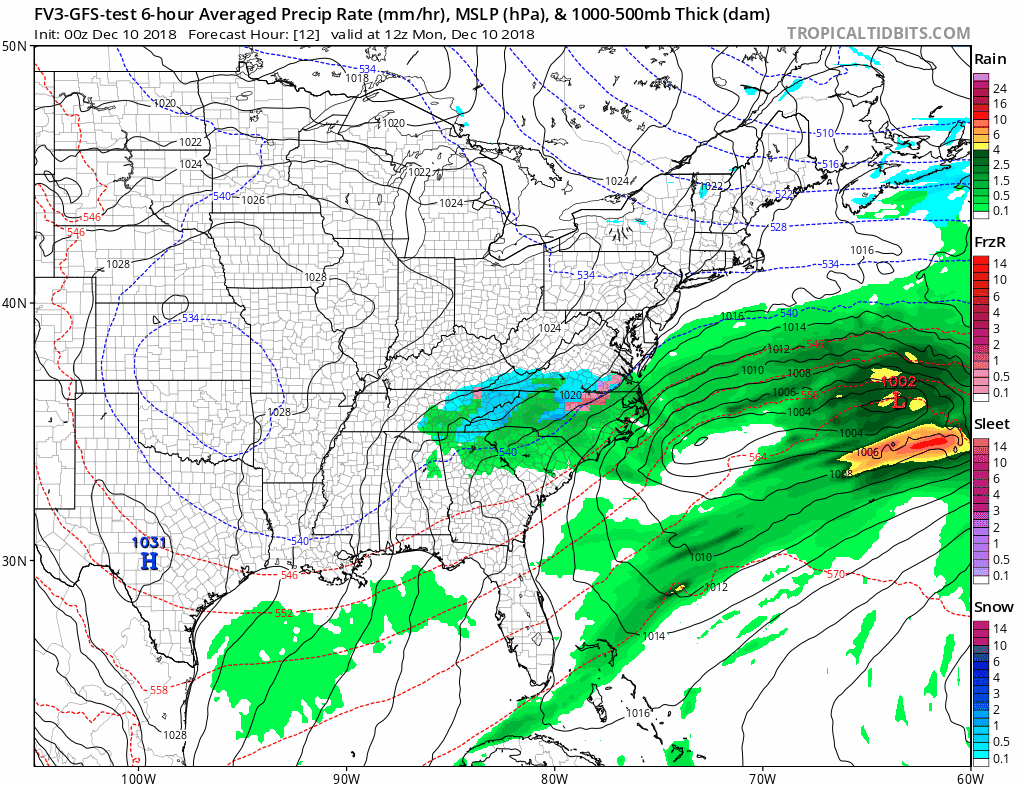 There is a small chance of flurries on Thursday, then we get in on the warmer side of the next storm. Considering possible model error like this past event… We need to consider there track may shift and the back edge of the snow might mix in snow over the weekend. That is seen on the FV3-GFS here. That was one of the best performing models with the recent event.
