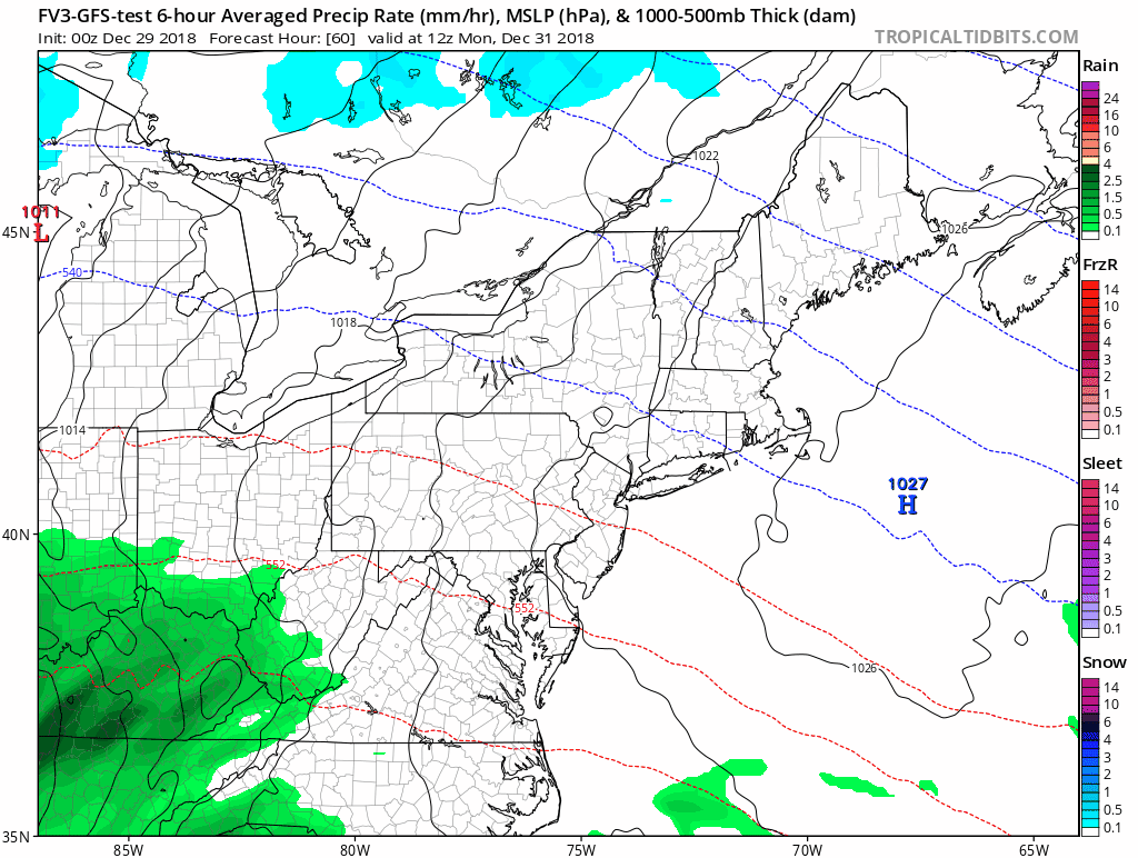 Rain will move in during the afternoon and evening. We could see some moderate bands around midnight then the storm moves away Tuesday morning, New Year’s Day