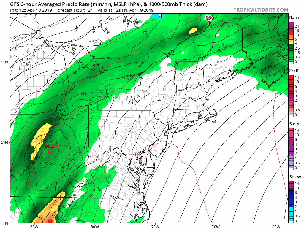 Here is a sample of the rainfall progress Friday through Sunday. I will show the timeline tonight or tomorrow morning for a better idea of the flooding. Here I wanted to show that the main event will Friday afternoon and night. Saturday morning may start with showers, but dry out. Then the upper low will produce more rain Easter Sunday. This may begin as soon as morning and last much of the day.