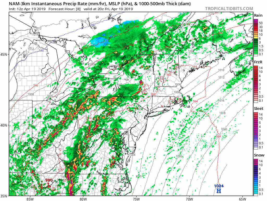 The upper level Low will be crossing our region. This will be cool and unstable so expect it to be chilly and cloudy with periods of rain developing. It should not be severe, just wet.