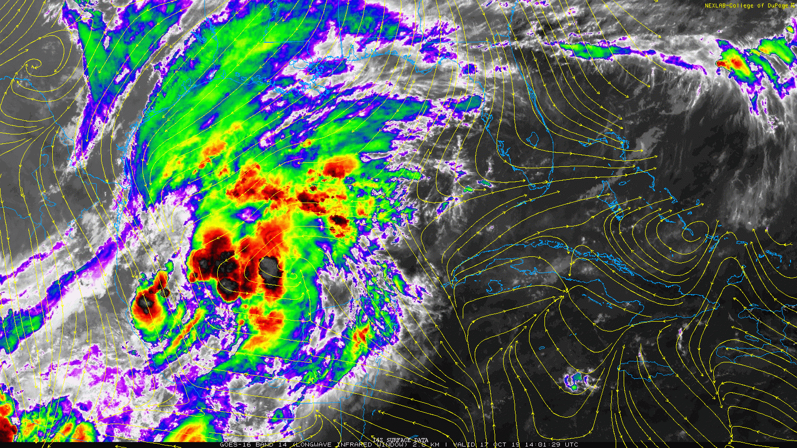 The wind machine in place today is from record Low Pressure in New England. That’s the storm that brought us rain yesterday and pulling in gusts to 50 mph today. The next system is forming in the southwest Gulf of Mexico and just identified as Potential Tropical Cyclone 16 from the National Hurricane Center. It is likely to get a name by tonight as it continues to organize.