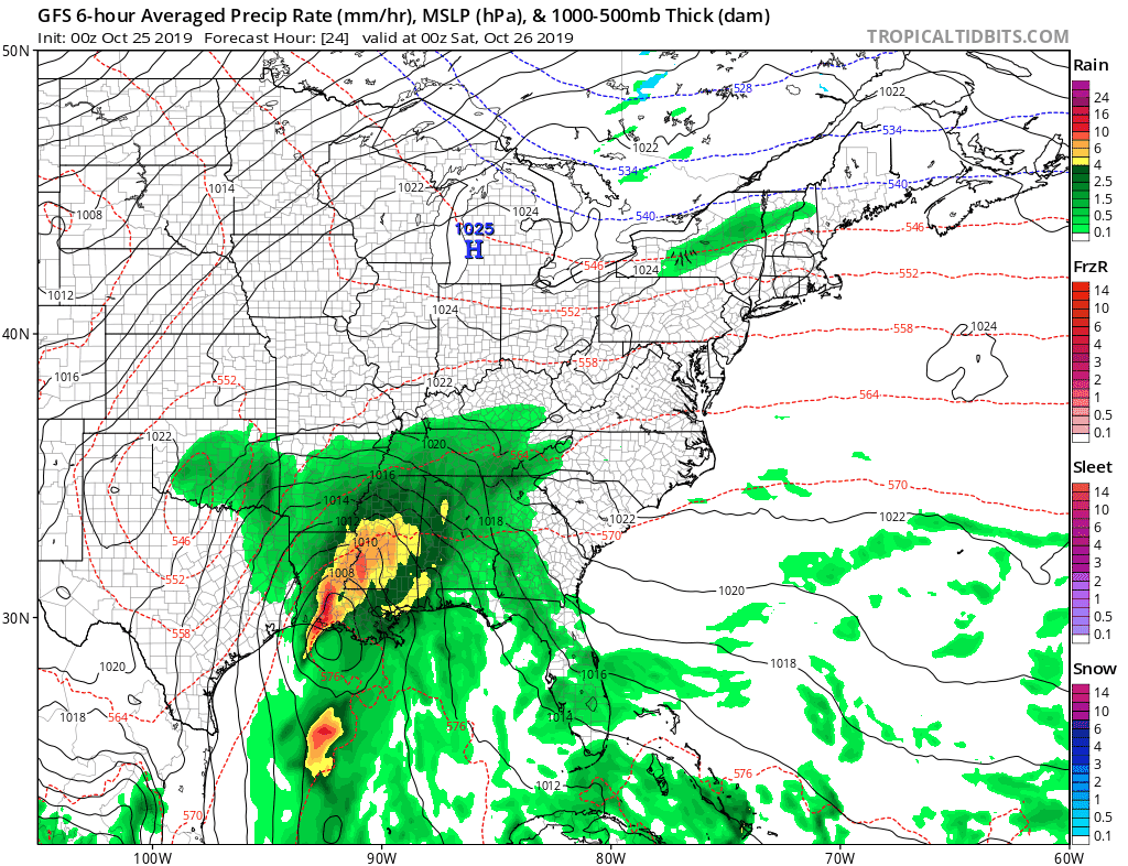 The GFS Model is more aggressive with the rain this weekend, then brings in the next rain event on Wednesday, ending with snow in western Maryland Thursday morning.