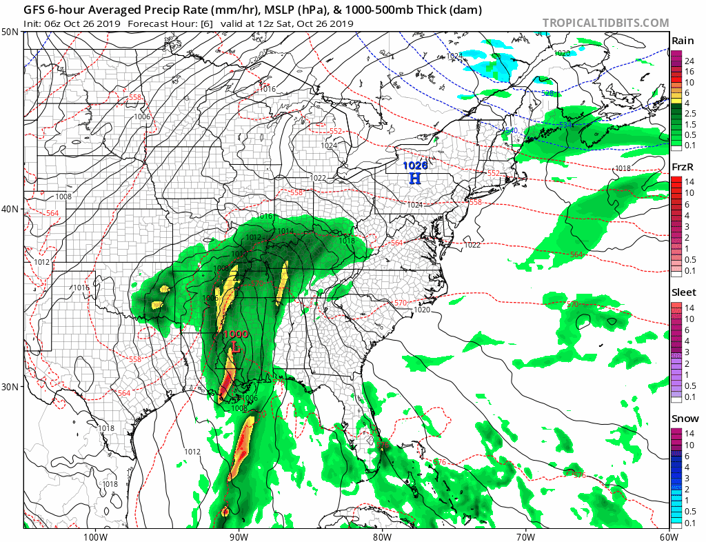 A strong storm in the southern US got a boost yesterday when Tropical Storm Olga was named in the Gulf of Mexico. But much like last weekend with Nestor, this moved onshore soon after and now is absorbed as part of a larger system to spread our way. Some spotty showers will move in today, but the bulk of rain will be Sunday morning and early afternoon. Strong winds and a squall line will bring this to a peak early afternoon. See the timeline and rain forecast below.