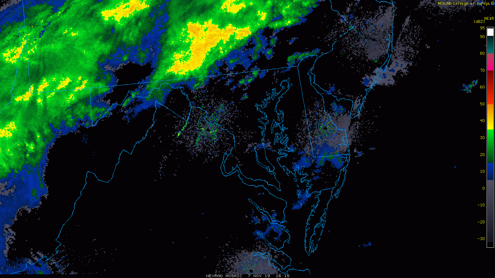 Early this afternoon the rain has been from Hagerstown to Harrisburg and on the north side of York in PA. The push of the front will shift this east into metro areas over the next few hours.
