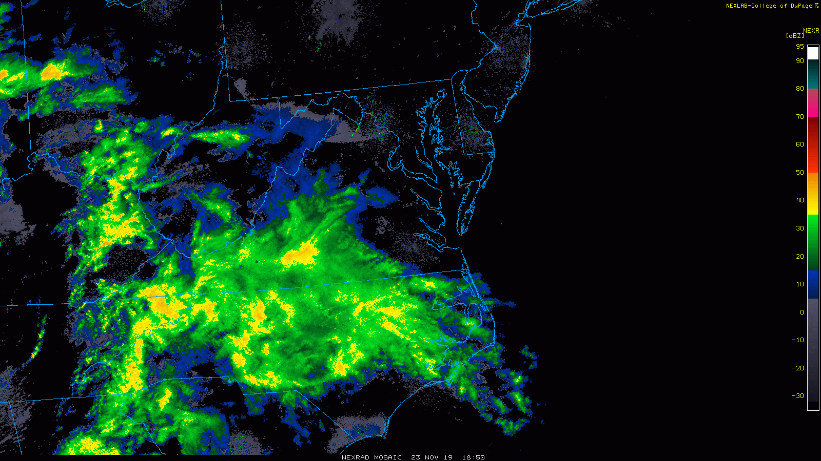 One wave of rain showers near Mt Airy, Frederick and Westminster heading into southern PA. The main batch is in southern Virginia and will spread in this evening and tonight.