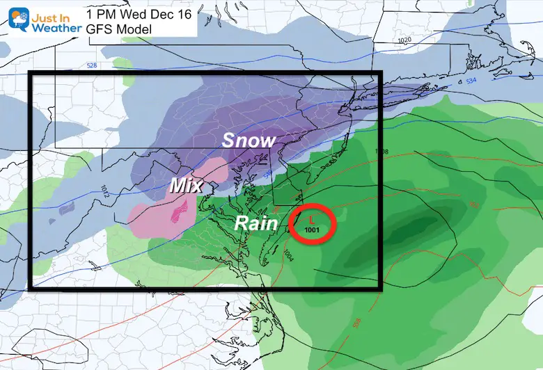 - Storm 3: Wednesday coastal low Pressure brings snow and wintry mix. More on that below